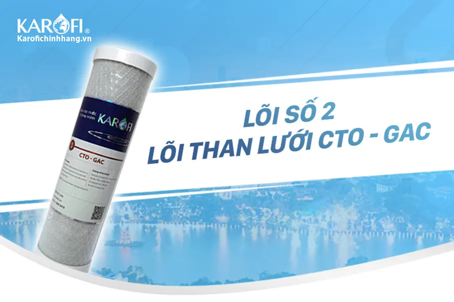 - Ngoài việc hấp thụ các chất hữu cơ và mùi hôi, than hoạt tính trong lõi CTO còn được chứng minh có hiệu quả trong việc xử lý một số chất độc hại như chất phóng xạ, asen và amoni. Điều này cho thấy lõi số 2 không chỉ giúp loại bỏ những tạp chất thông thường mà còn góp phần quan trọng trong việc làm sạch nước khỏi những nguy cơ tiềm ẩn, đảm bảo nước uống đạt tiêu chuẩn an toàn sức khỏe cho cả gia đình.