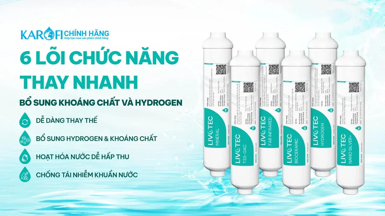 Máy lọc nước Livotec 635 được trang bị 6 lõi chức năng, mang đến khả năng lọc nước tối ưu và tiện lợi cho người sử dụng. Mỗi lõi đều có vai trò quan trọng trong việc đảm bảo nguồn nước không chỉ sạch mà còn bổ dưỡng cho sức khỏe.