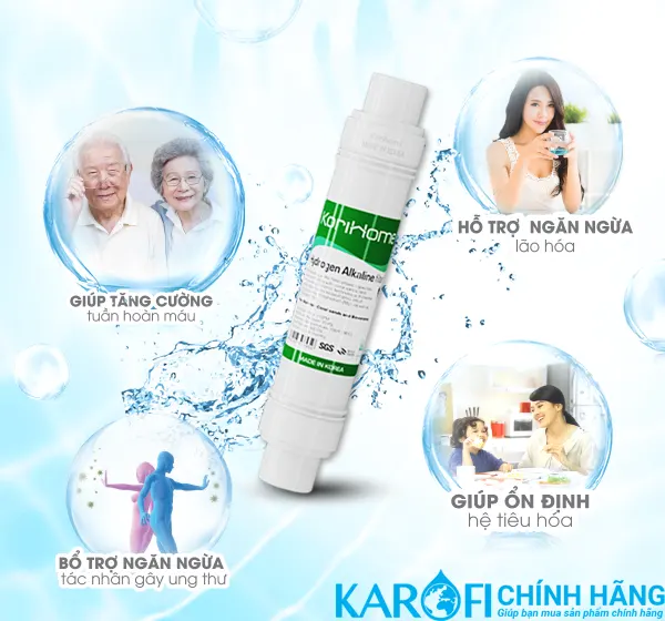 -Với công nghệ màng lọc Hydrogen Alkaline, phân tử nước sẽ được chia nhỏ hơn, giúp cơ thể hấp thụ nhanh, cải thiện quá trình trao đổi chất, ổn định hệ tiêu hóa.