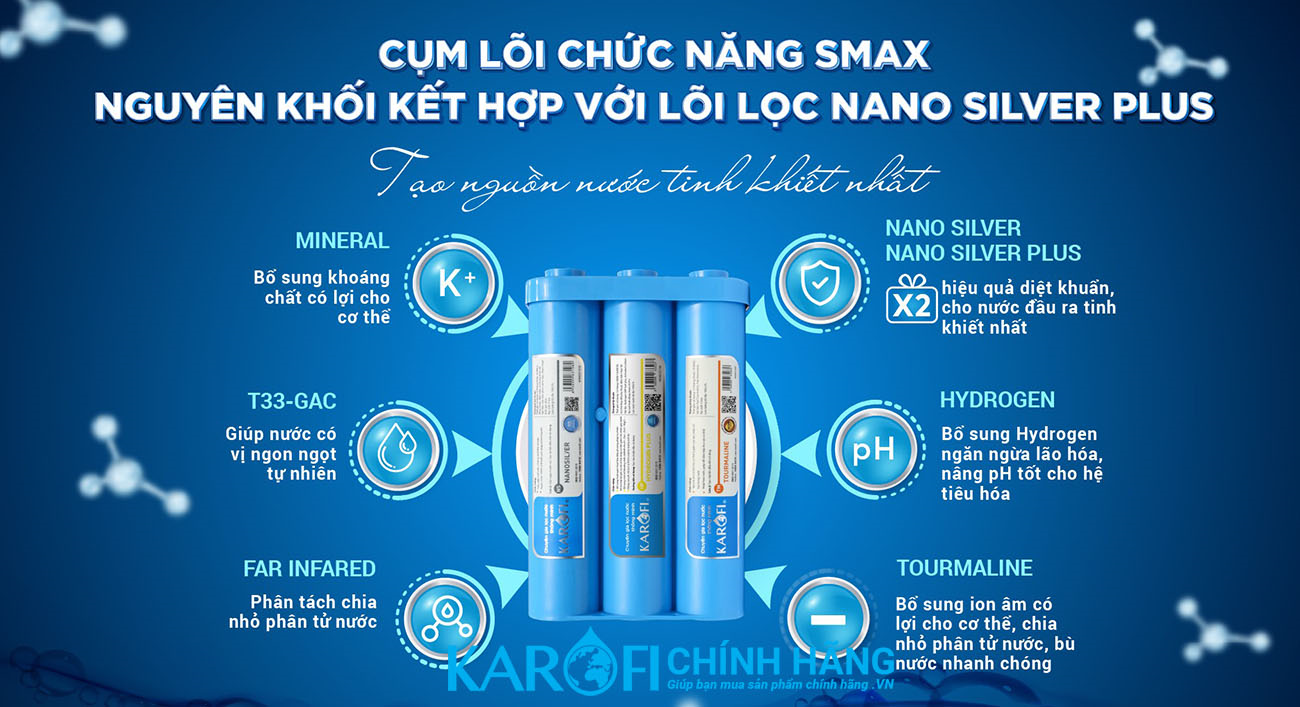 + Bộ lõi lọc chức năng SMAX hiệu suất cao sử dụng công nghệ đúc nguyên khối