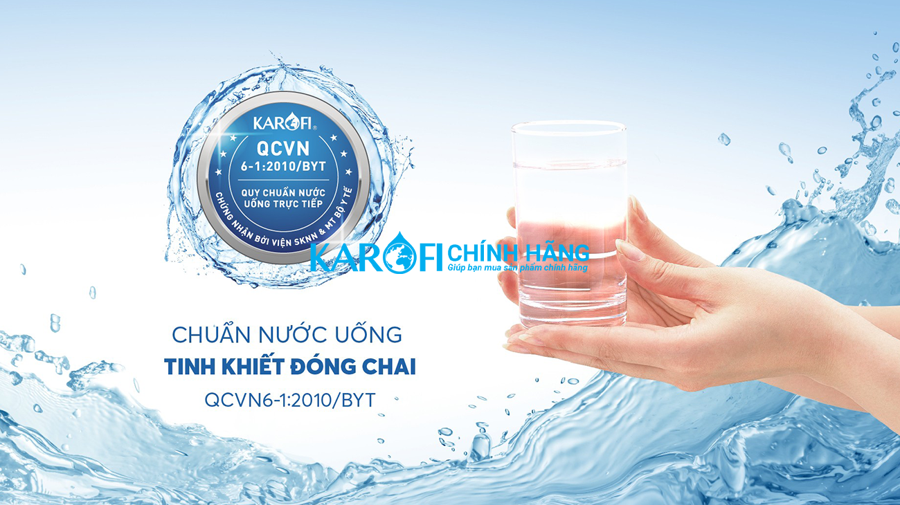 Trải qua nhiều quy trình kiểm định chặt chẽ, nguồn nước sau lọc từ máy lọc nước nóng lạnh Karofi KAD-D66 đã được Viện Sức khỏe nghề nghiệp & Môi trường – Bộ Y Tế công nhận Nước sau lọc đạt chuẩn nước uống tinh khiết đóng chai QCVN 6-1:2010