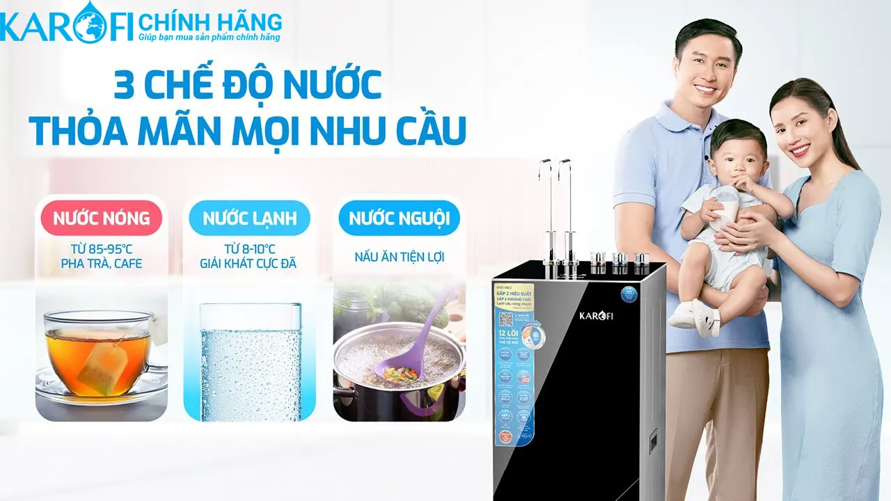 MÁY LỌC NƯỚC NÓNG LẠNH KAROFI KAD-M82: GẤP ĐÔI HIỆU SUẤT – GẤP ĐÔI KHOÁNG CHẤT – LÀM NÓNG NHANH, LÀM LẠNH SÂU