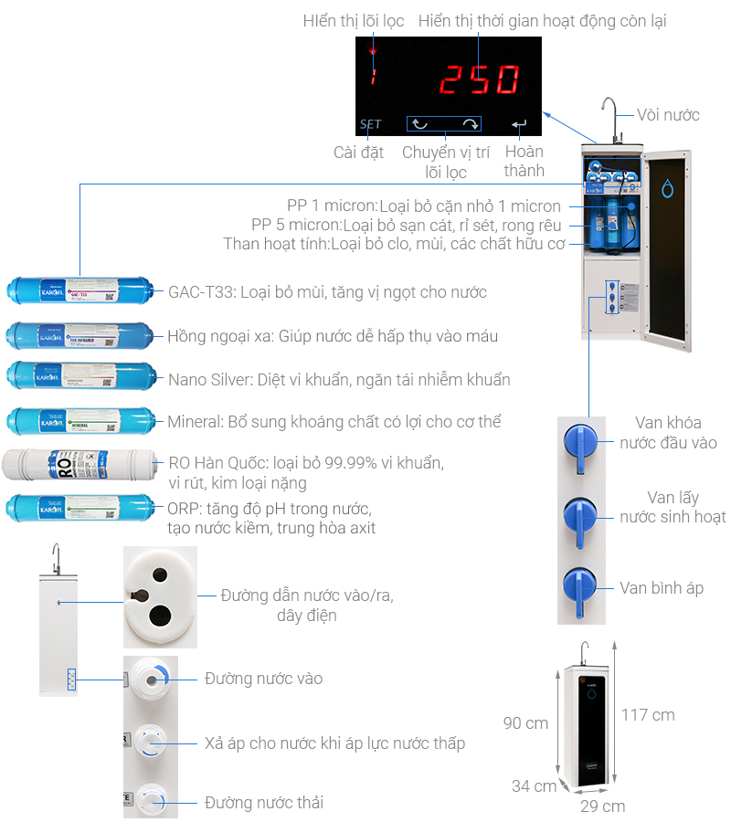 - Máy lọc nước RO Hydrogen Karofi M-I129/H - 9 Lõi sử dụng hệ thống 9 lõi lọc