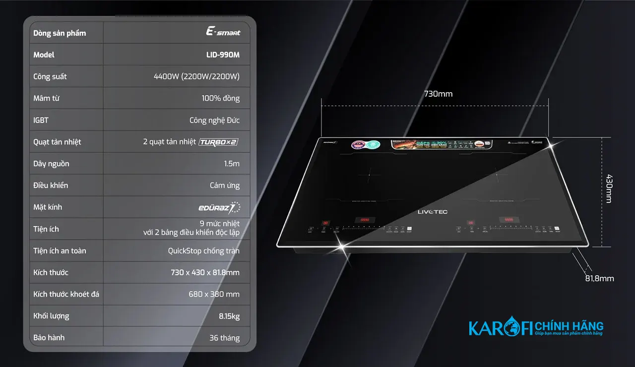 - IGBT Đức & mâm từ E-smart đồng nguyên chất: Điều chỉnh nhiệt chính xác, tiết kiệm 30% điện, tuổi thọ gấp 5x bếp thường, truyền nhiệt nhanh gấp đôi.