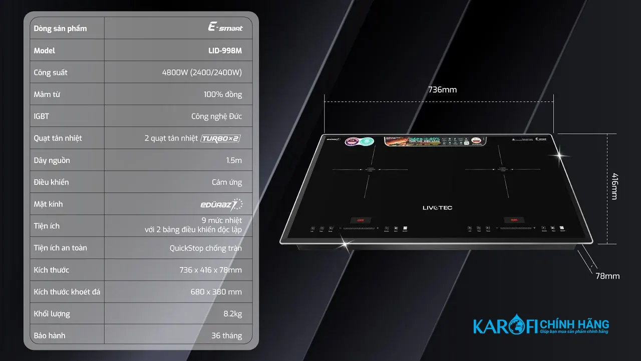 - Công nghệ IGBT 2x Đức: Tiết kiệm 40% điện, tuổi thọ 5x, truyền nhiệt 2x nhanh (E-smart).