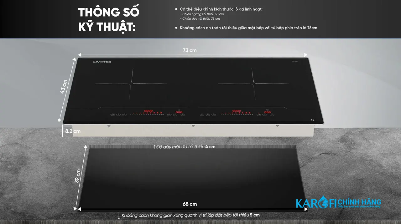 - 2 vùng nấu độc lập (2000W/vùng), 9 mức công suất linh hoạt – nấu đa dạng món từ hầm nhừ đến chiên xào.