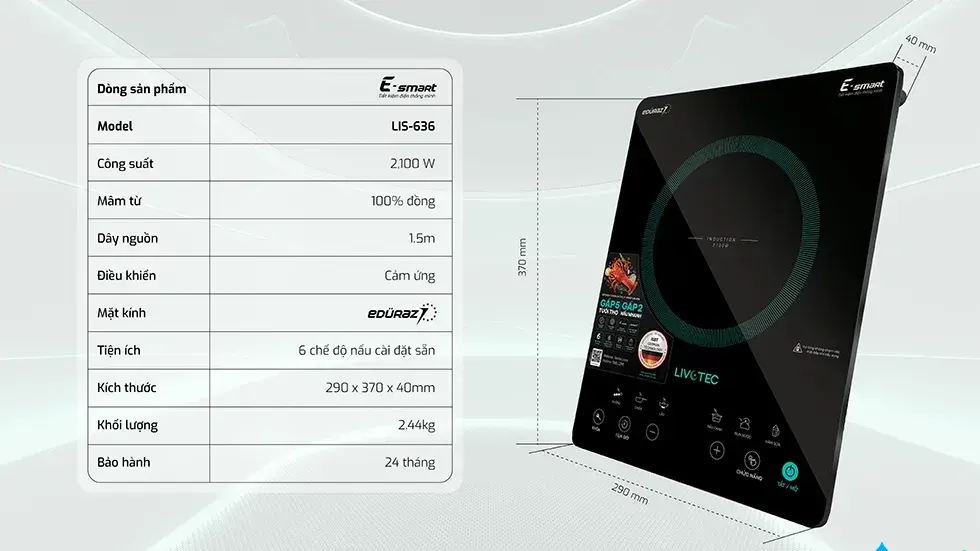 - Công nghệ IGBT Đức & mâm đồng E-smart: Truyền nhiệt nhanh gấp 2 lần, tiết kiệm 30% điện, tuổi thọ gấp 5 lần.