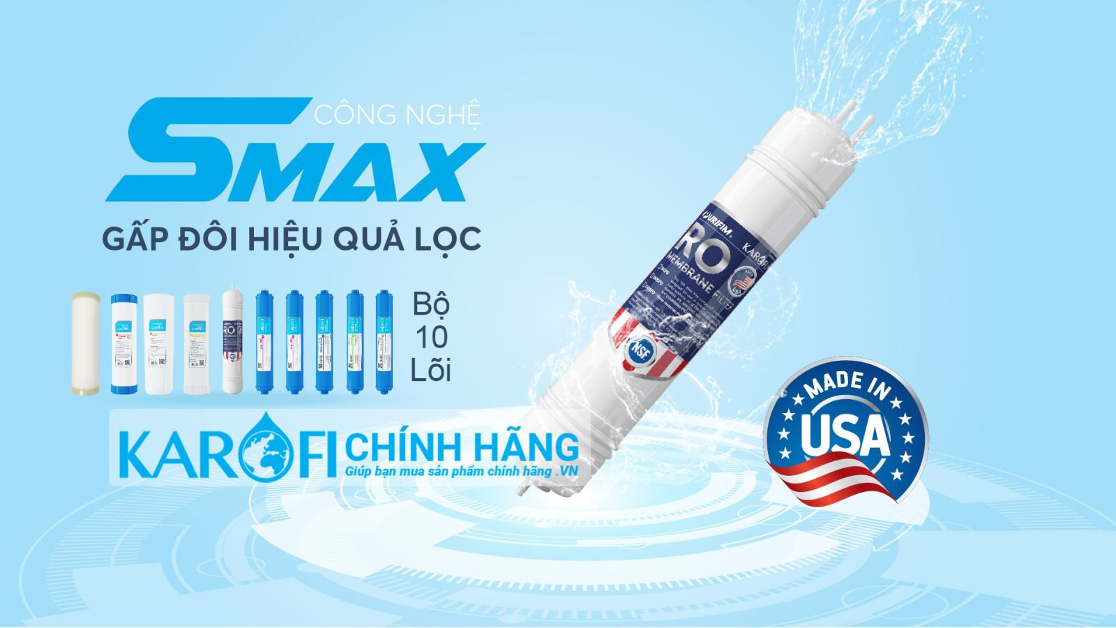 Sử dụng màng RO ưu việt của Mỹ - PURIFIM với công nghệ Smax (tăng diện tích màng) giúp nhân đôi hiệu quả lọc, vô trùng tuyệt đối, thuận tiện cho việc thay lắp. Màng RO được tích hợp trong hệ thống lọc 08 cấp mạnh mẽ giúp nguồn nước luôn đảm bảo tinh khiết đến từng giọt. Ưu việt hơn với x2 lõi T33 giúp nước ngon và ngọt hơn.