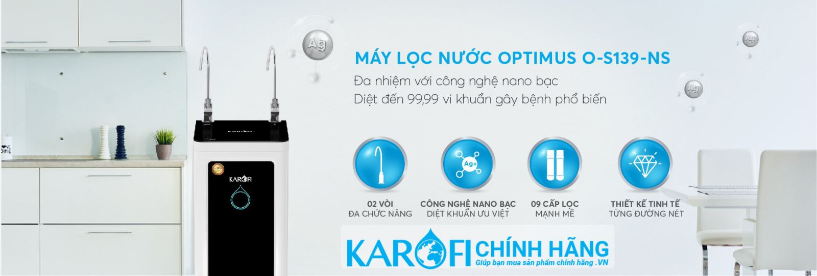 - Bên cạnh vòi lấy nước RO tinh khiết sử dụng uống trực tiếp và nấu ăn hàng ngày, Máy lọc nước Karofi Optimus O-s139-NS nay còn tích hợp thêm 01 vòi nước nano bạc riêng biệt, đa nhiệm đa chức năng. Chức năng diệt khuẩn lên tới 99.99%