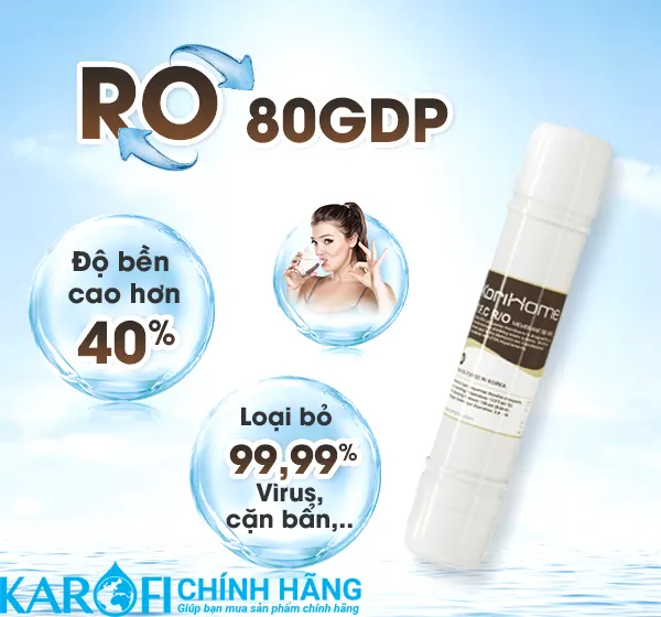 -Trang bị công nghệ màng lọc RO – 80GPD, công suất lọc và độ bền cao hơn 40% so với màng RO 50GPD thông thường trên thị trường. Loại bỏ được 99,99% kim loại nặng và virut – vi khuẩn có hại
