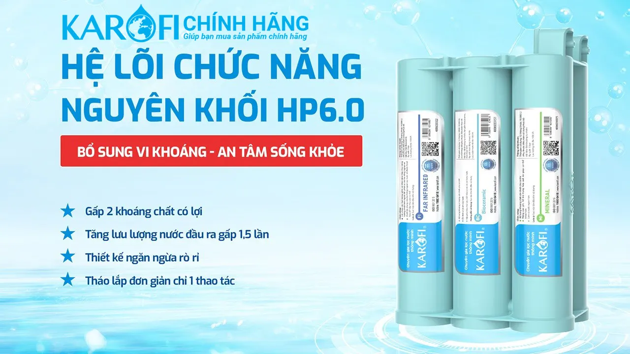 Lõi HP 6.0: Đúc nguyên khối chống rò rỉ, chống tái nhiễm khuẩn, bổ sung khoáng chất.