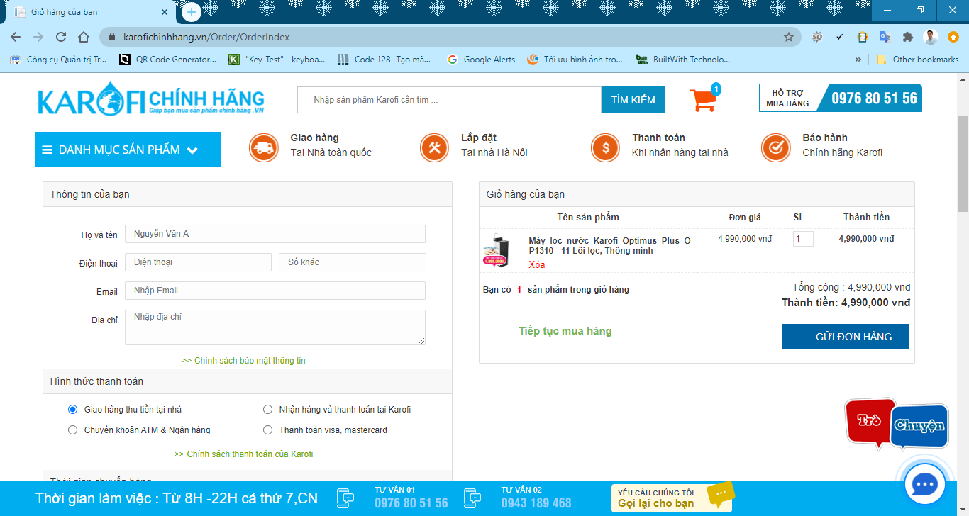 Cách 1 : Bạn có thể gọi điện trực tiếp tới hotline : 0976805156 để nhân viên chúng tôi có thể hỗ trợ bạn